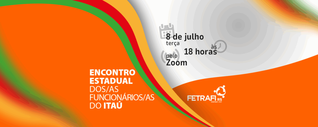 Na próxima terça-feira, 8 de julho, às 18 horas, acontece o Encontro Estadual do Itaú, em formato virtual, pela plataforma Zoom. A atividade é parte da programação da 27ª Conferência Estadual dos(as) Bancários(as) e será um momento fundamental para debater os principais problemas enfrentados pela categoria e organizar os próximos passos da luta coletiva.
