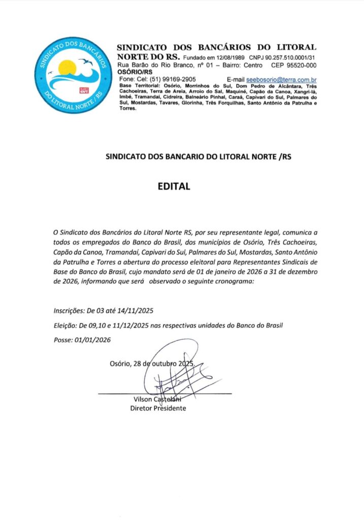 EDITAL: ELEIÇÕES PARA REPRESENTANTE DE BASE BANCO DO BRASIL